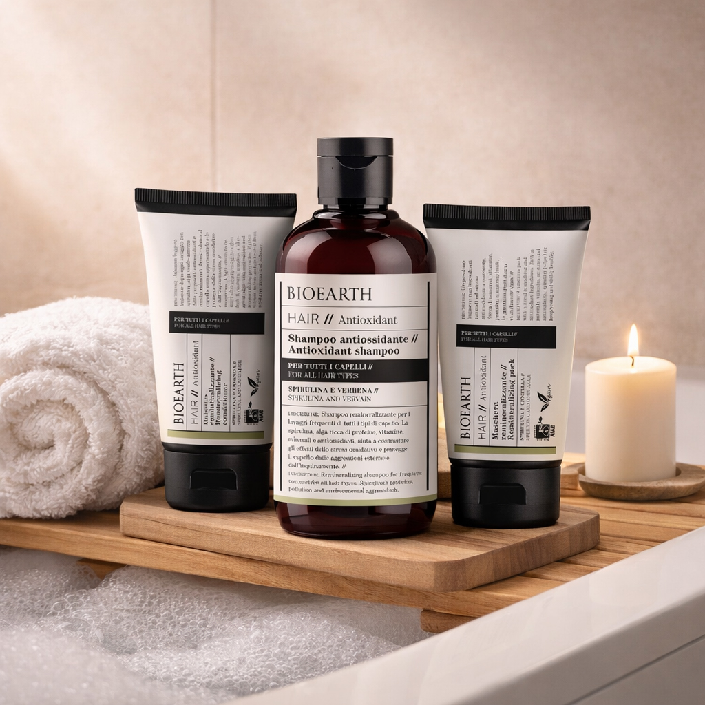 • Vlasová péče BIOEARTH NEOBSAHUJE: sulfáty (SLS/SLES), silikony, parabeny, minerální oleje, PEG, PPG, Cetrimonium Chloride, Polyquaternium, Parfemace.