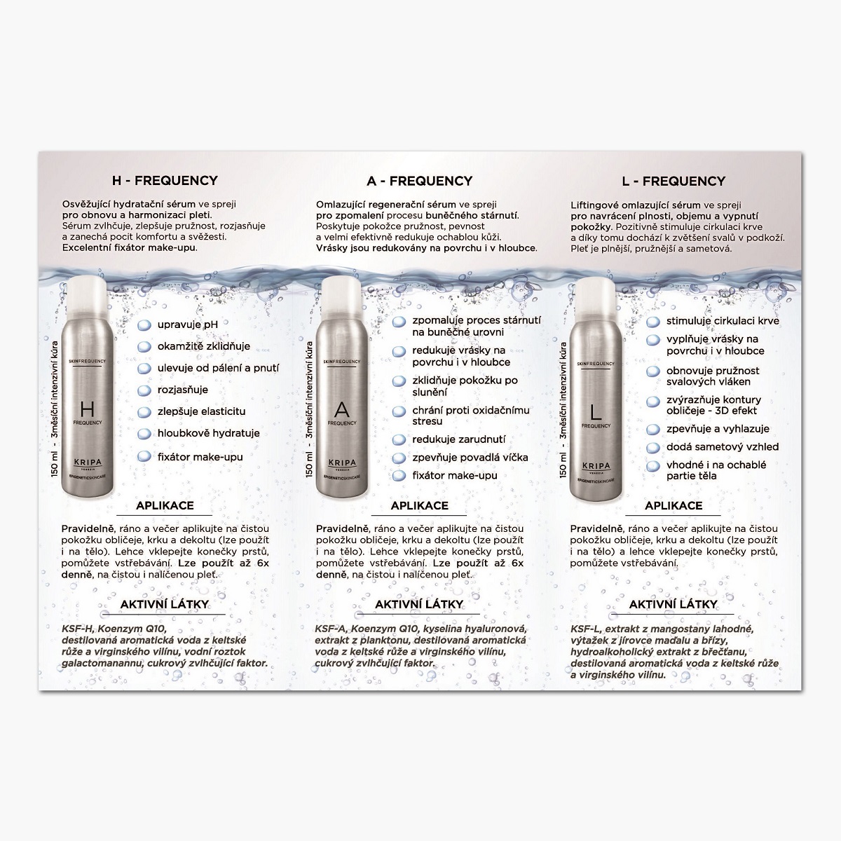 HYDRATACE · ROZJASNĚNÍ · ZKLIDNĚNÍ · ELASTICITA · FIXACE MAKE-UPU